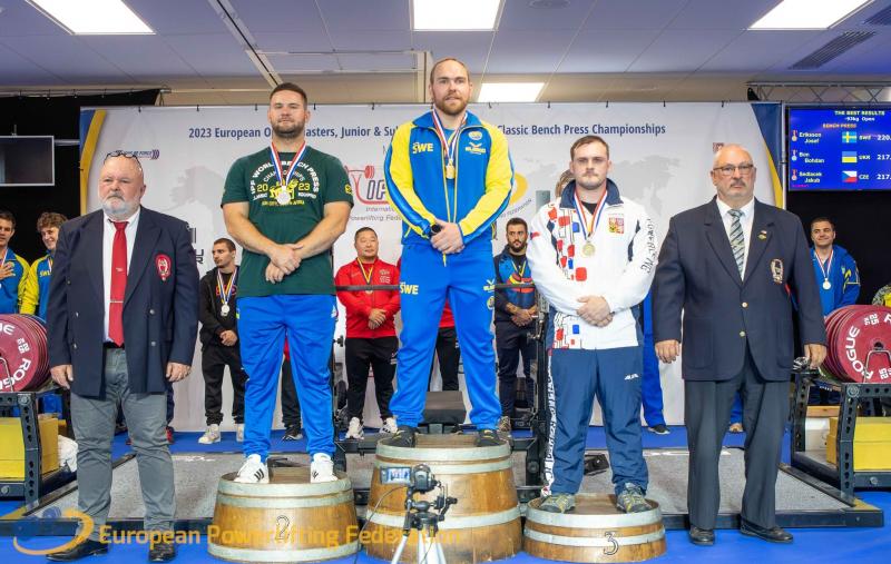 Ve dnech 31. 7. - 6. 8. 2023 se uskutečnilo ve francouzském Bordeaux Mistrovství Evropy v klasickém benčpresu (RAW) a benčpresu (EQ)