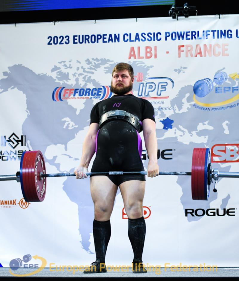 | 2023 | Evropský pohár univerzit mužů v klasickém silovém trojboji | Francie | Open | Open 120+kg | 265.0 | 167.5 | 270.0 | 702.5 | 3. |